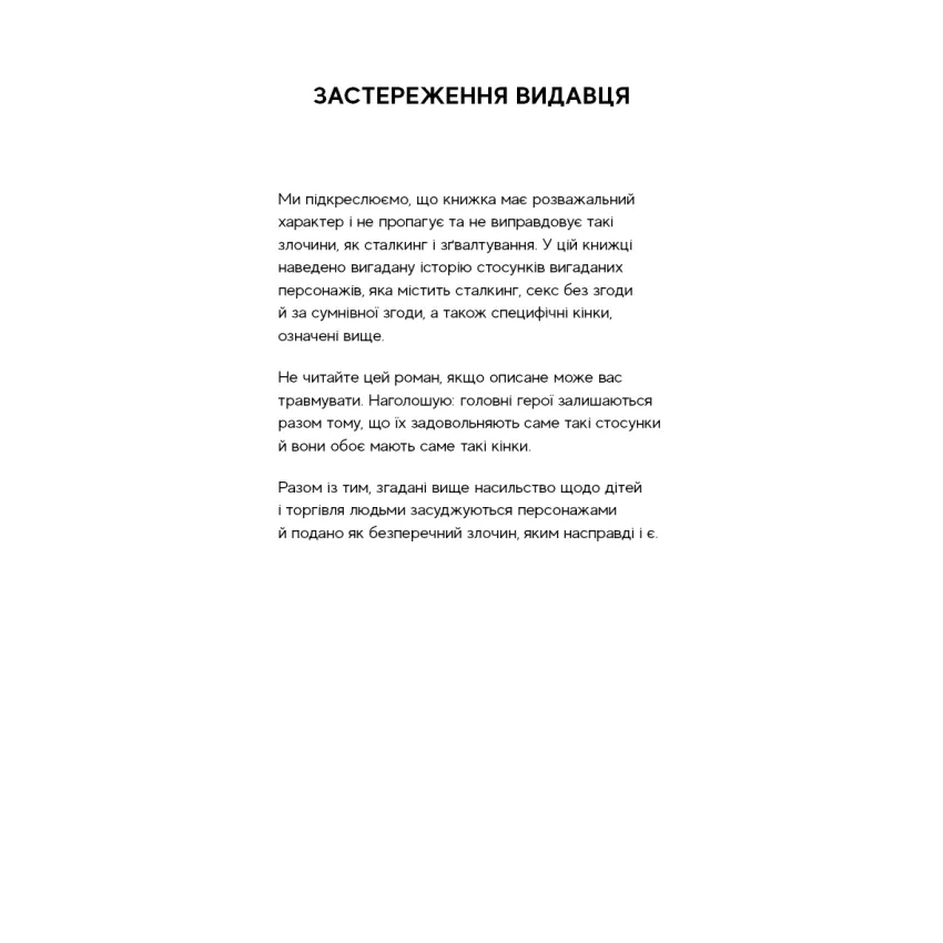 Читачам темних психологічних трилерів, фанатам напружених історій про переслідування, токсичні взаємини та внутрішню боротьбу, а також тим, хто любить книги з максимальною емоційною напругою.