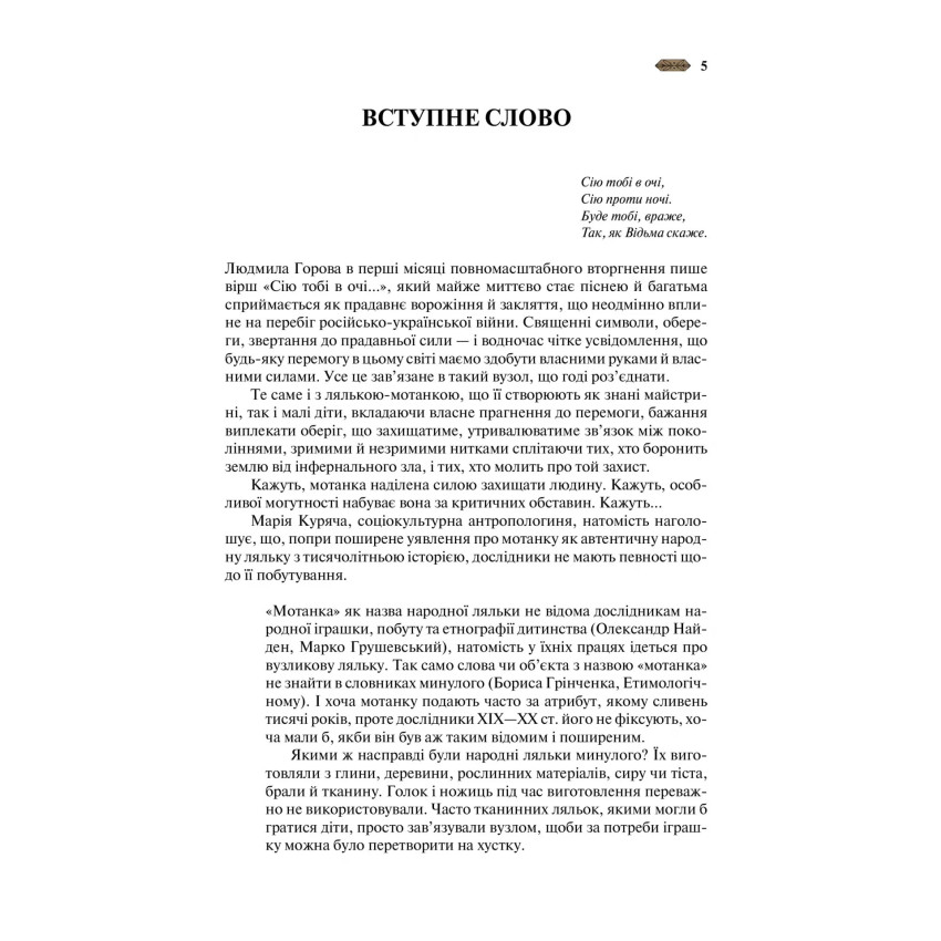 Сучасна фантастика в Україні та світі дійсно має жіноче обличчя. Збірка фантастичних оповідань «Мотанка» познайомить читачів із творами дванадцяти сучасних українських авторок, різними за настроєм та спрямуванням, сетингом та стилем. Містика та фантастика у цих оповіданнях щораз повертається до жіночого досвіду під час війни, навіть якщо переносить читачів до альтернативного Леобурга чи невідомого болотяного краю у вигаданому світі, зіштовхує героїв із русалками чи духами мертвих. Героїні цих історій сильні, здатні долати загарбників та боронити себе й тих, кого люблять. Й ці героїні неодмінно вам запам’ятаються.