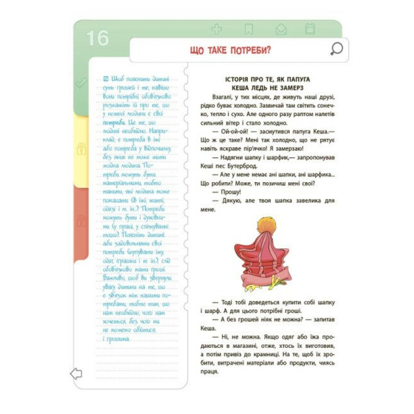 За допомогою цієї книги ви зможете допомогти їй побудувати здорове, свідоме та раціональне ставлення до фінансів. Видання містить прості й зрозумілі поради, завдяки яким малюки засвоять основи економічних знань. До кожної теми запропоновано інструкцію для батьків, завдання та запитання для дитини, тематичну історію.