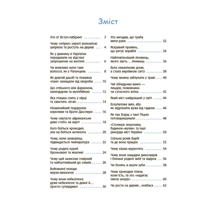 “Читанка-ЧОМУчка” — це захоплива книжка для допитливих дітей від 7 років, яка відповідає на найцікавіші питання про навколишній світ! Чому акула не відчуває болю в зубах? Чи справді ковбаса росте на дереві? І кого боїться крокодил, а кого — ні? Книжка містить 30 захоплюючих історій, що розкривають цікаві факти з різних тем: природи, історії України, будови тіла та здоров’я, а також багато іншого.
