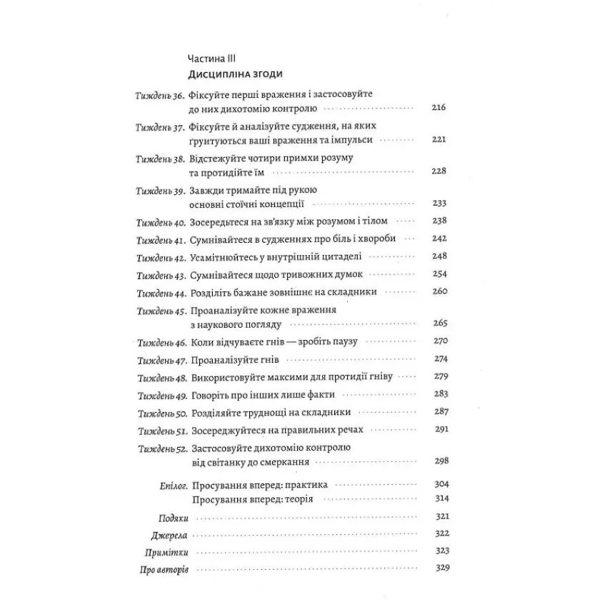 У сучасному світі люди весь час кудись поспішають, живуть у постійному стресі та під тиском дедлайнів. Ця книжка — справжній практичний посібник зі змін свого життя на краще, розрахований на цілий рік (52 тижні). Вона не просто пояснює принципи стоїцизму, а ще й дає конкретні вправи, які допоможуть звільнитися від тягаря психологічної напруги, усвідомити внутрішню силу та почати насолоджуватися моментом. Це книжка, створена не для читання, а для дій.