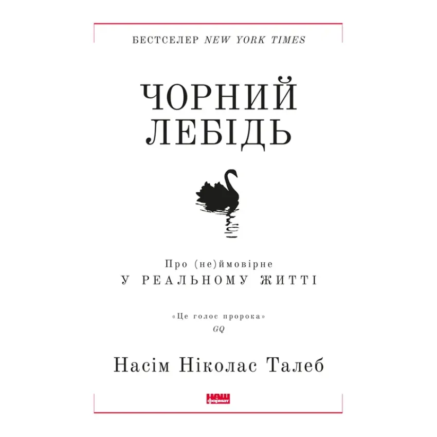 «Чорний лебідь» — це пристрасний, іронічний і глибокий екскурс у філософію, математику й епістемологію ймовірності. Усі непередбачувані події Насім Талеб називає Чорними лебедями. Він уважає, що саме вони дають поштовх як історії людства загалом, так і життю кожного з нас. Фінансовий гуру й філософ переконаний, що аби досягти успіху, треба знати, як приручити Чорних лебедів. Талебу вдалося продемонструвати свою теорію на практиці: під час фінансової кризи 2008 року компанія, на яку він працював, заробила (а не втратила!) півмільярда доларів.